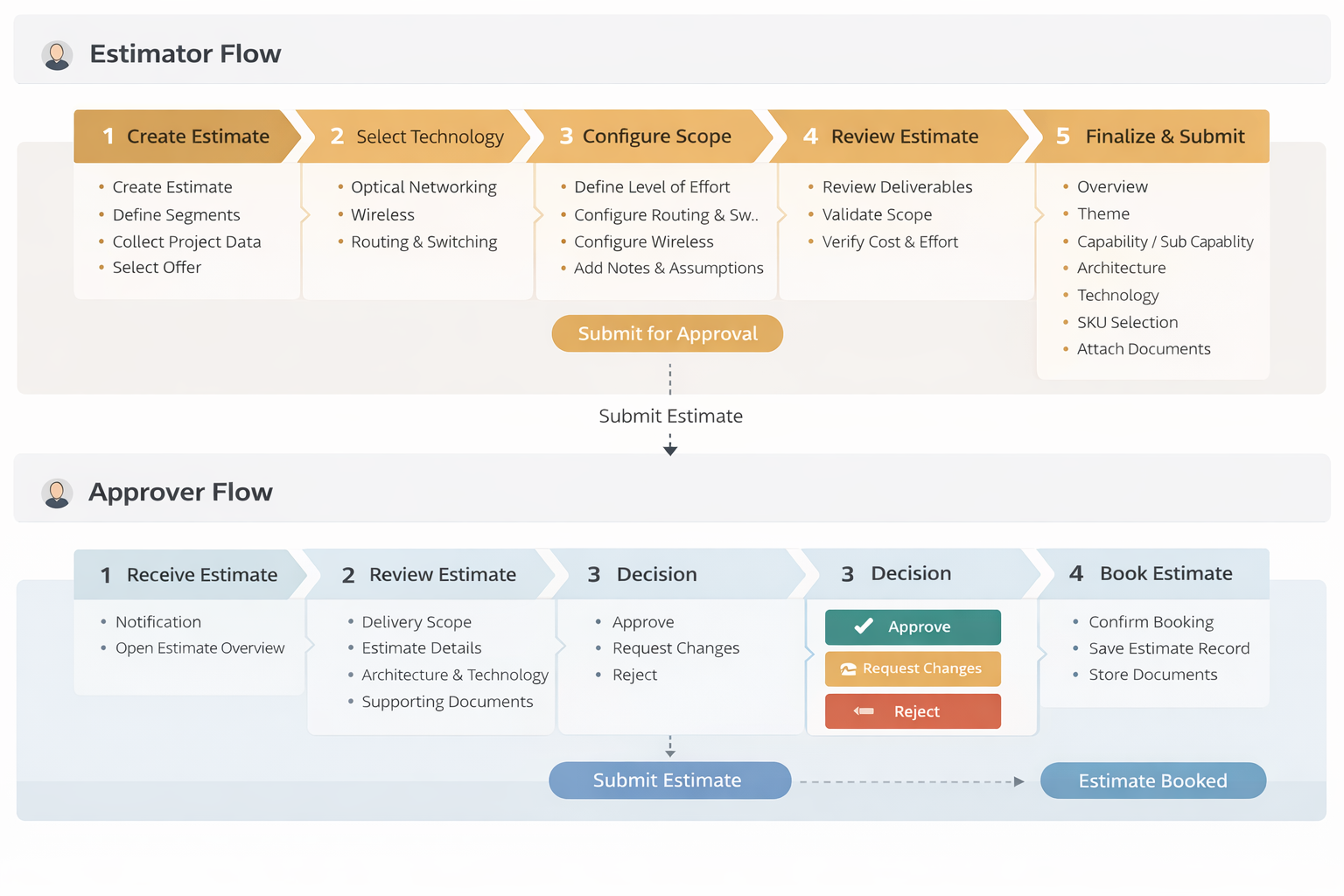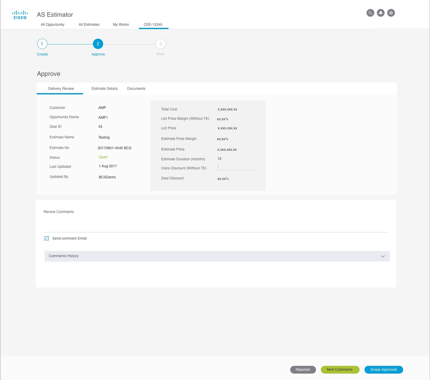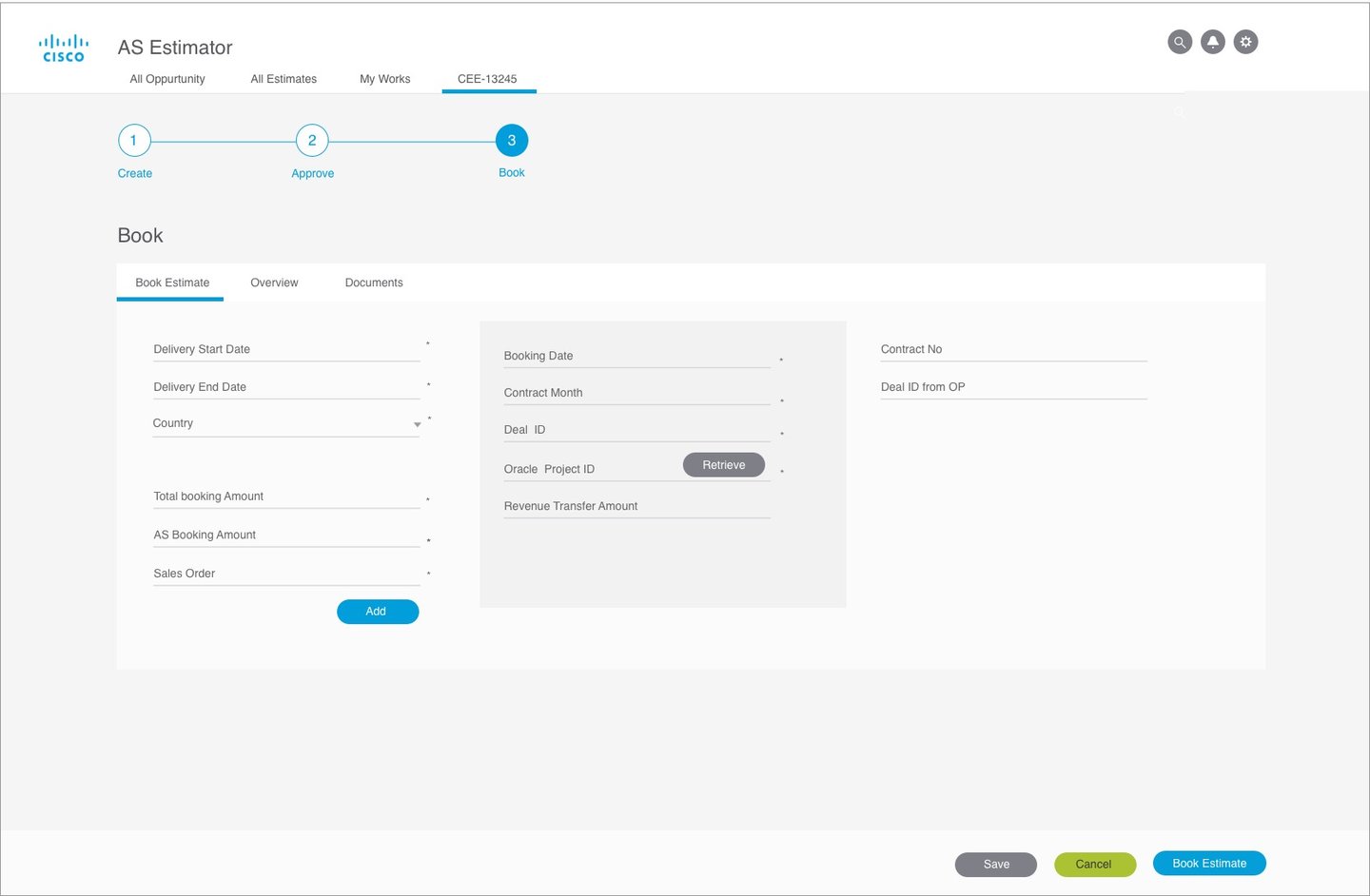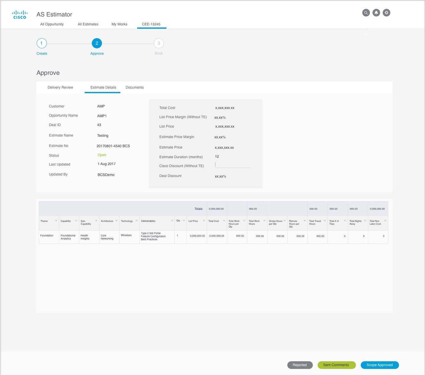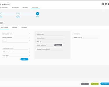 AS Estimator is a web-based enterprise application designed to help internal Cisco teams efficiently create, review, approve, and finalize service estimates for Cisco products. The platform streamlines the entire estimation workflow by enabling teams to generate accurate cost estimates, collaborate across departments, and ensure proper approvals before booking services.The platform supports a multi-step workflow: