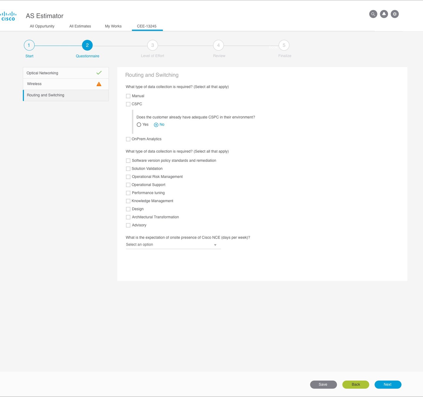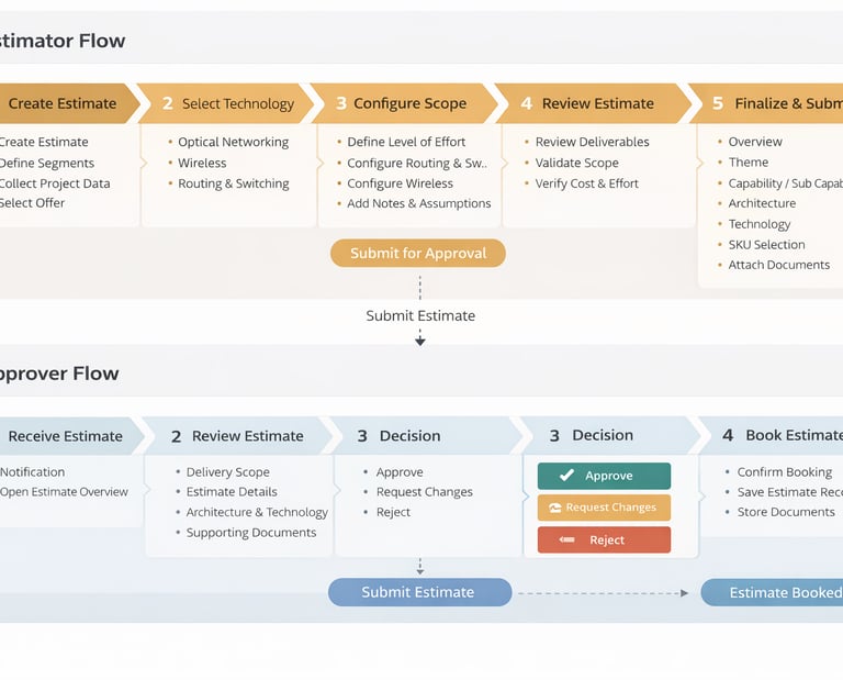 The goal was to simplify a highly complex estimation workflow while aligning it with Pega implementation constraints and Cisco’s service architecture.