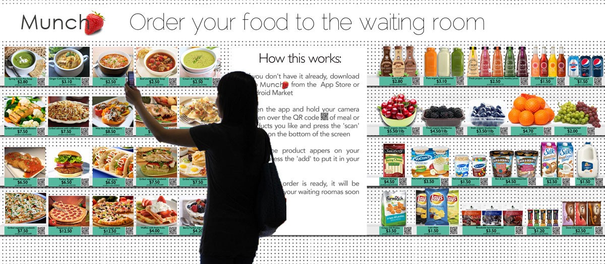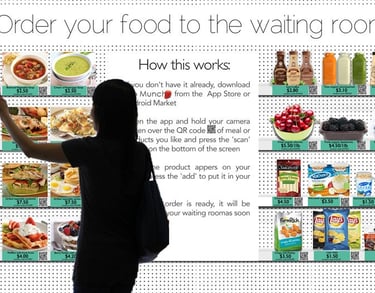 A virtual grocery experience embedded in ICU waiting rooms using a physical poster with QR codes linked to a mobile app.