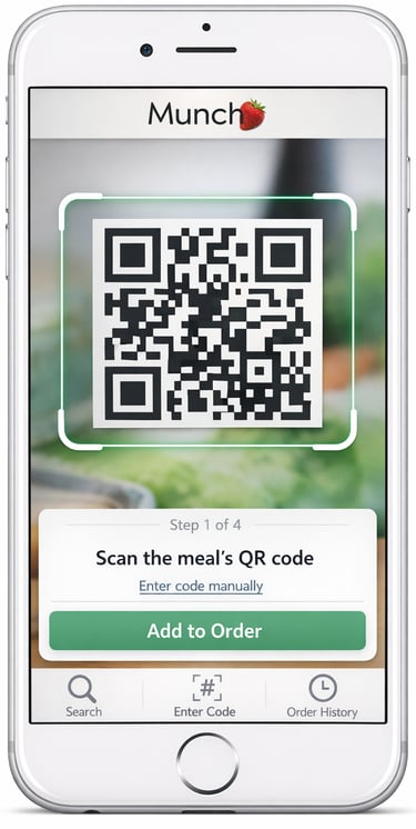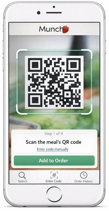 The user scans the QR codes of the meal or available groceries he/she wishes to order.