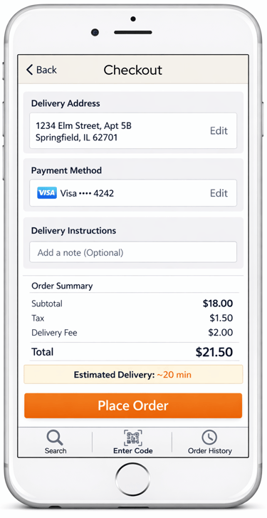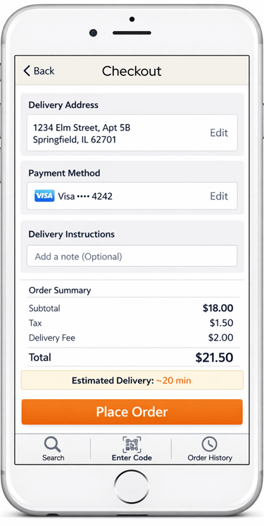 User confirms delivery details and payment