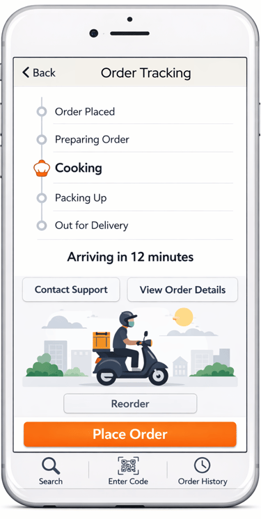 User browses and places order through the app