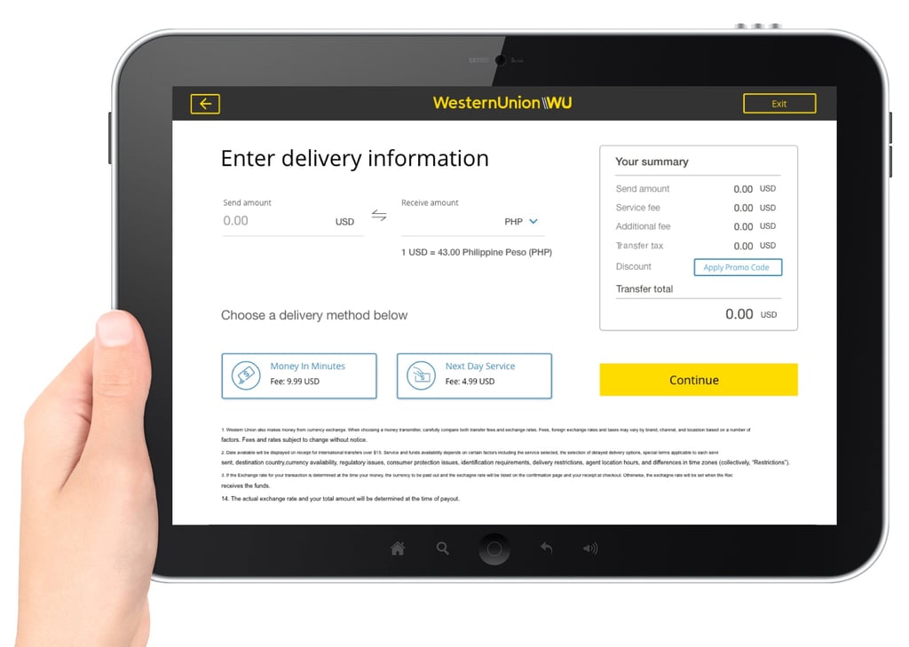 Western Union’s self-service kiosk was designed to provide convenience to retail customers while reducing operational costs.