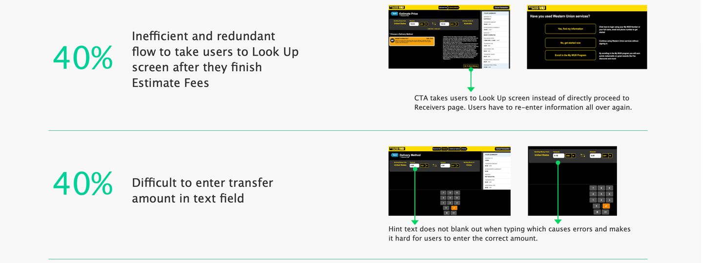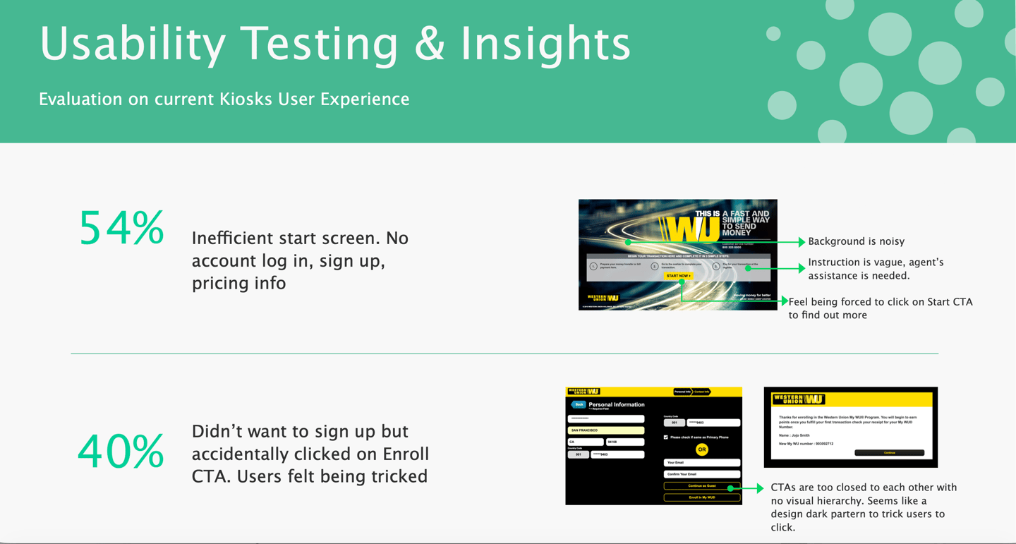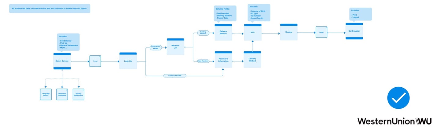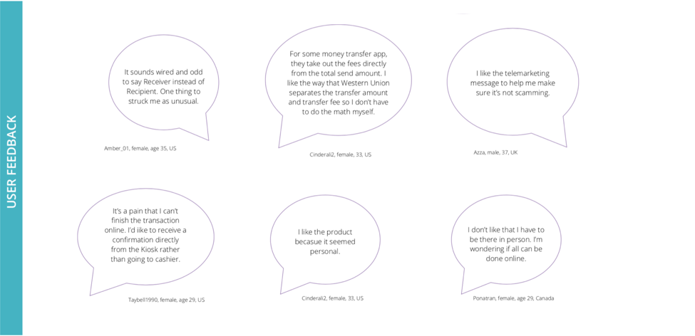 In order to understand the target audience a bit more, I conducted user interviews at Western Union's retail locations. By doing this, I could capture why customers use Western Union kiosk and what value they took from it.