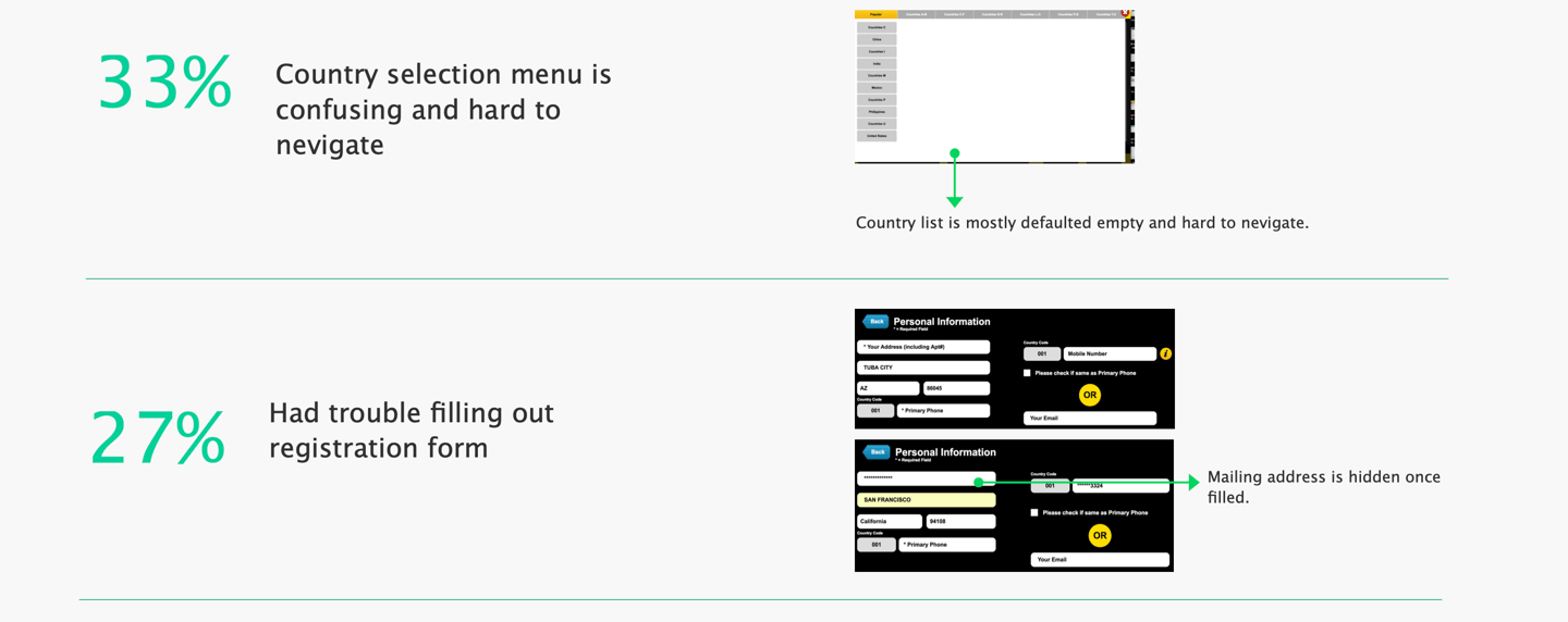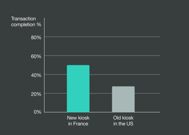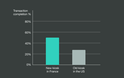 When comparing the early-stage conversion metrics between the US kiosk product and the newly-designed French version, we noticed a 23% difference in the transaction completion rate.