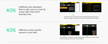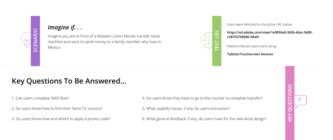 The conclusion is that the new kiosk product will be focusing on the send money flow which is the core of the business and gets the most traffic.