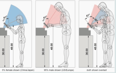 As for the ergonomics aspect, there are four important dimensions that have the direct impact on the interaction between user and kiosk machine.