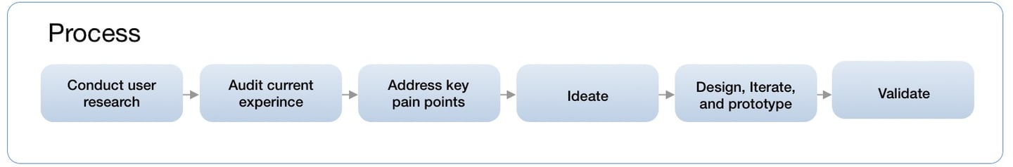 After understanding customers' needs and concerns, I started to revisit and audit the existing experience. Auditing the existing experience helped me see the bigger picture of the product and also inspired me to come up with strategies to resolve the user concerns I discovered from the previous research.