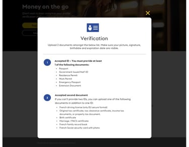 For instance, the online verification portal that millions of Western Union retail customers use to upload documents and verify their identity is lacking clarity in terms of directions and requirements. On the other hand, the experience didn't provide a solution for customers to resume the progress if they were interrupted in the middle of the process. That significantly impacted the overall user experience and satisfaction of the service.