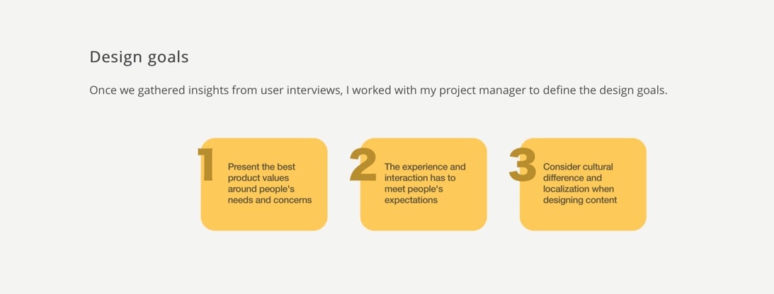 My content strategist and I decided to focus the content on the three aspects of the product value proposition.