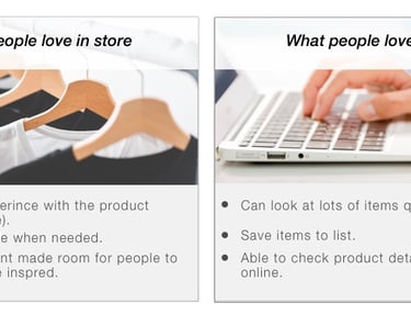 To thoroughly investigate the problem space of online shopping, I conducted observations in stores and online for fashion brands and other competitors. And then I conducted interviews based on topic maps.